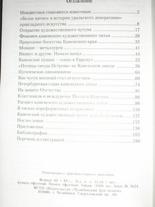 1. Байнов Л. П. Художественный чугун Кусы. 1998г. Серия *Южный Урал: Природно-географические факторы и историко-культурные процессы*. Челябинск Рифей 1998г. 240 с. твердый переплет, сост. новой книги. Фикс. 1500р.