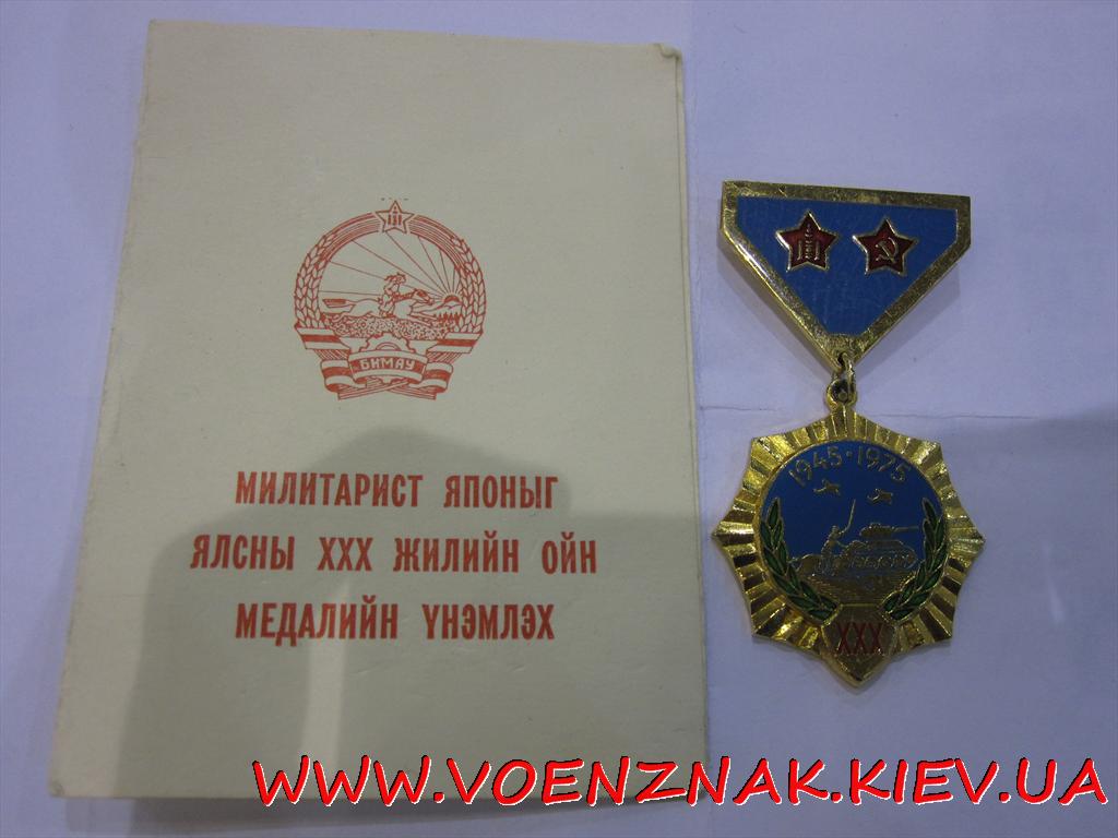 Монг. медаль Милитарист японыг ялсны ХХХ жилийн ойн медалийн унэмлех + док