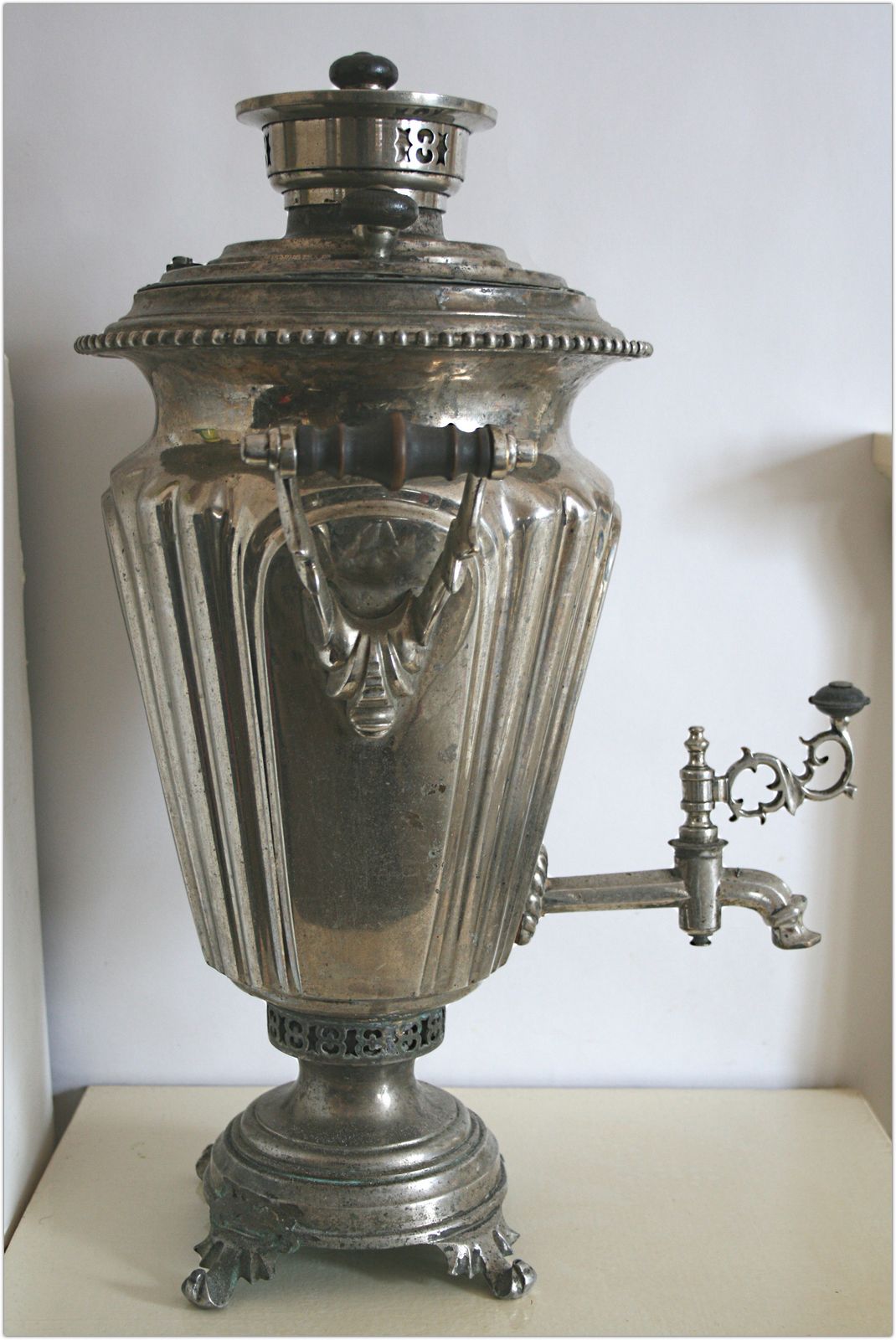 Самовар наследн.Баташева syv57 - 15 мар 2012 21:49.37 × Мини профиль пользователя syv57 Сообщения: 7948 Зарегистрирован: 13 янв 2011 16:16.51 Откуда: Муром Статус: Не в сети - 15 мар 2012 21:49.37 #3567014 5 литров, высота 52 см, дефекты - пайка ножки и пайка оловом по верху крышкиПредложите по РФ Фото