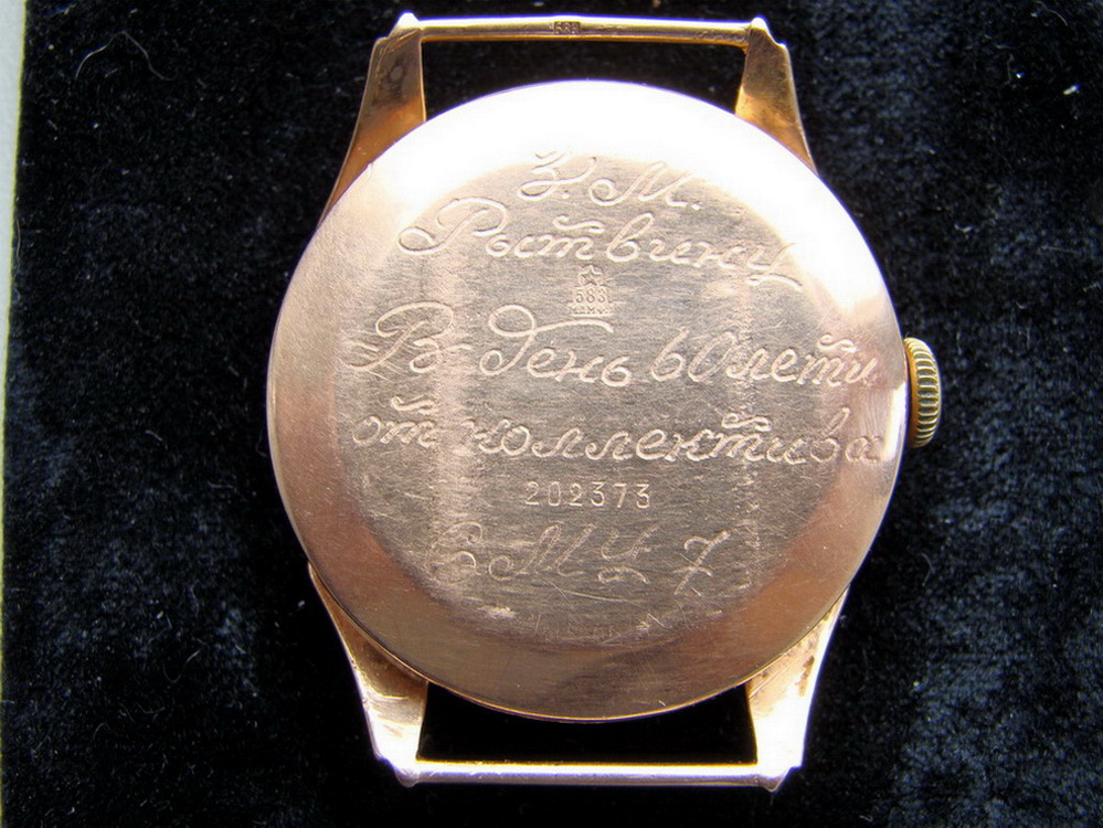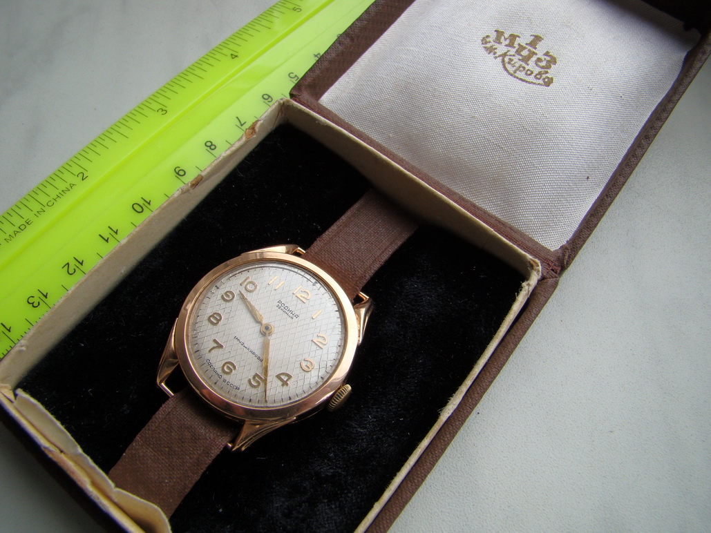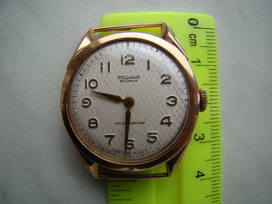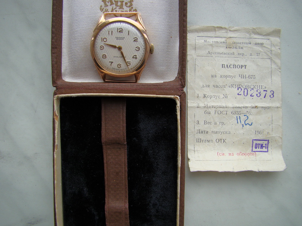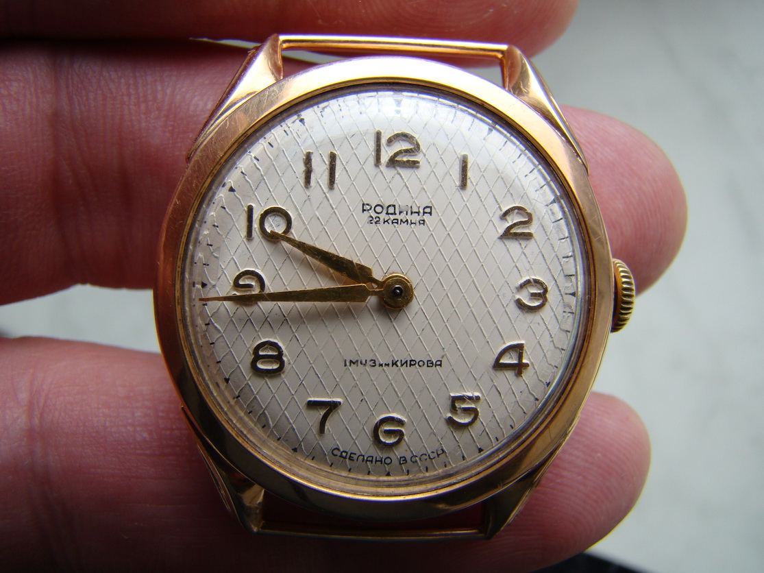 Часы "Родина" (чистый вес золота 583 пр. - 11,2 г.). Изготовитель - 1-й МЧЗ им. Кирова (СССР - 1961 г.). Клейма в наличии (все на фото).