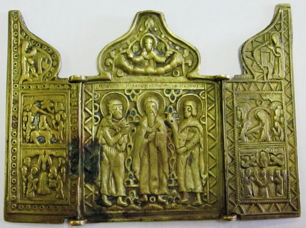 Размеры по высоте у распятий 15 и 15,5 см, складень (Антипа, Флор и Лавр)- 11 см.