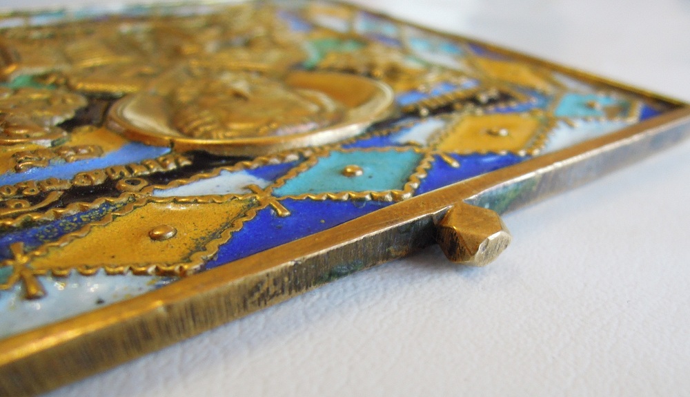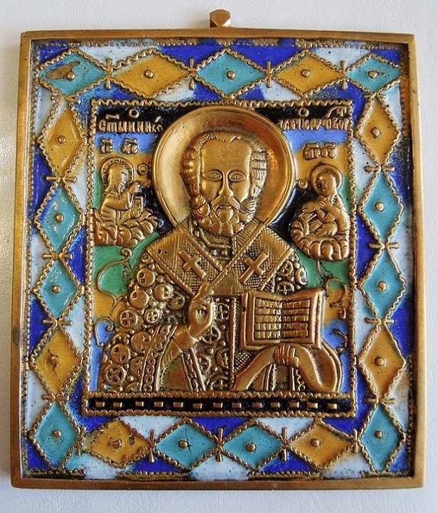 С левой стороны, у головы Николая скол, залитый лаком для ногтей. (легко убрать)