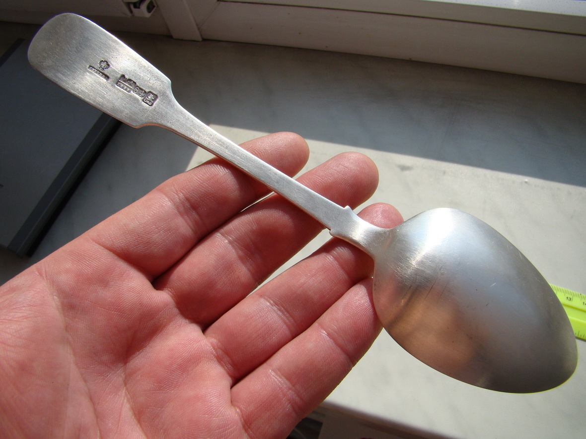 Столовая ложка (Ag-84), 1858 г. Вес = 74 г., L = 21,7 см. Клейма в наличии (ГУБКИН (поставщик двора..!)).