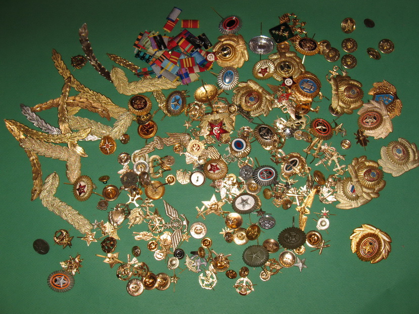 Общее количество, примерно около сотни погон, штук 250 кокард и фурнитуры + пуговицы.