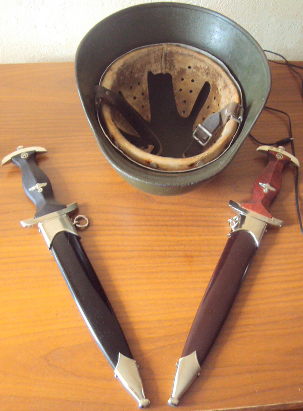 клинки сталь с заточкой с обеих сторон.. клейма.. ручки черное и красное дерево..