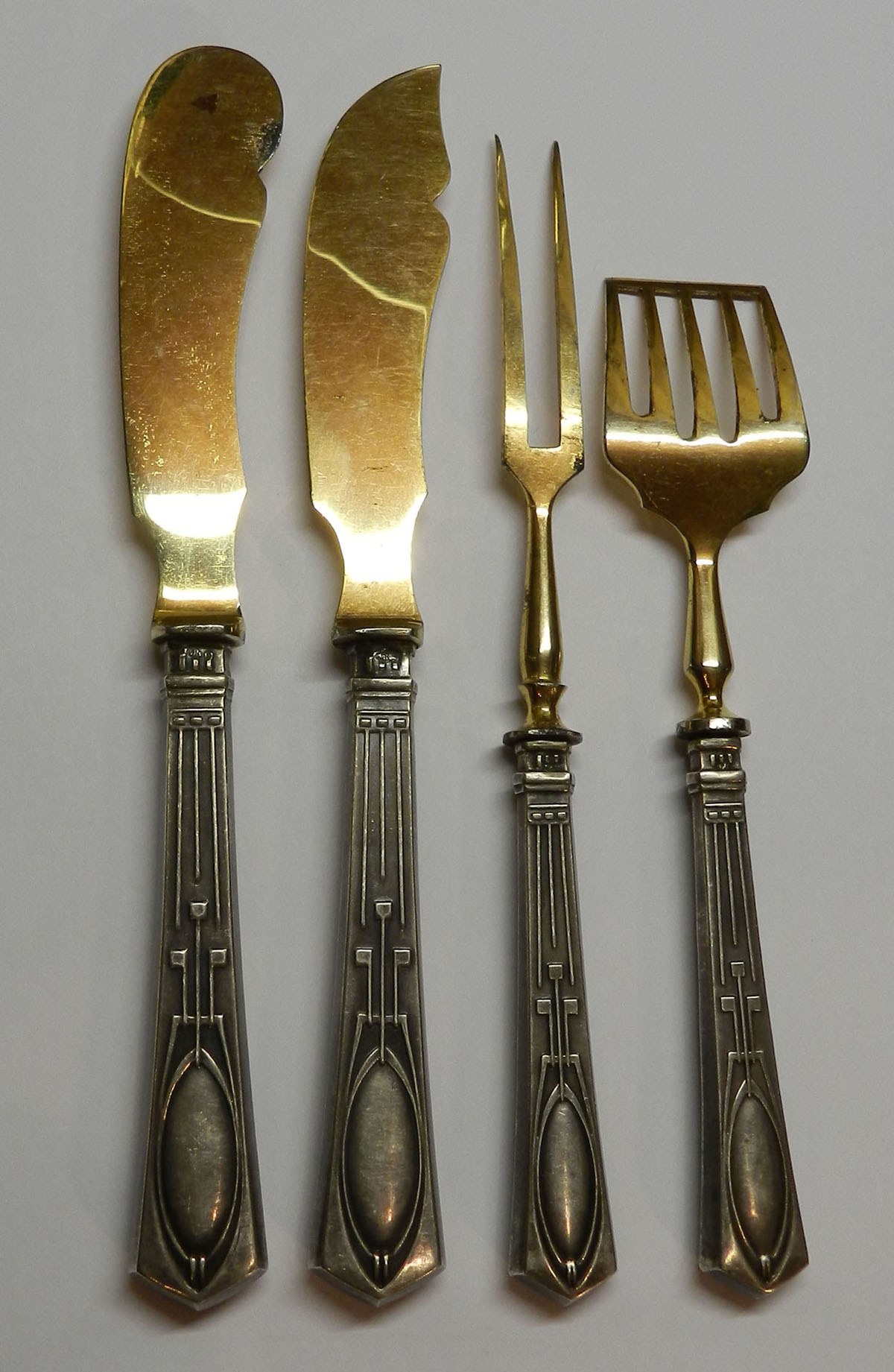 Ножи - 19,7см., вилка - 18,7см., лопатка - 16,4см.