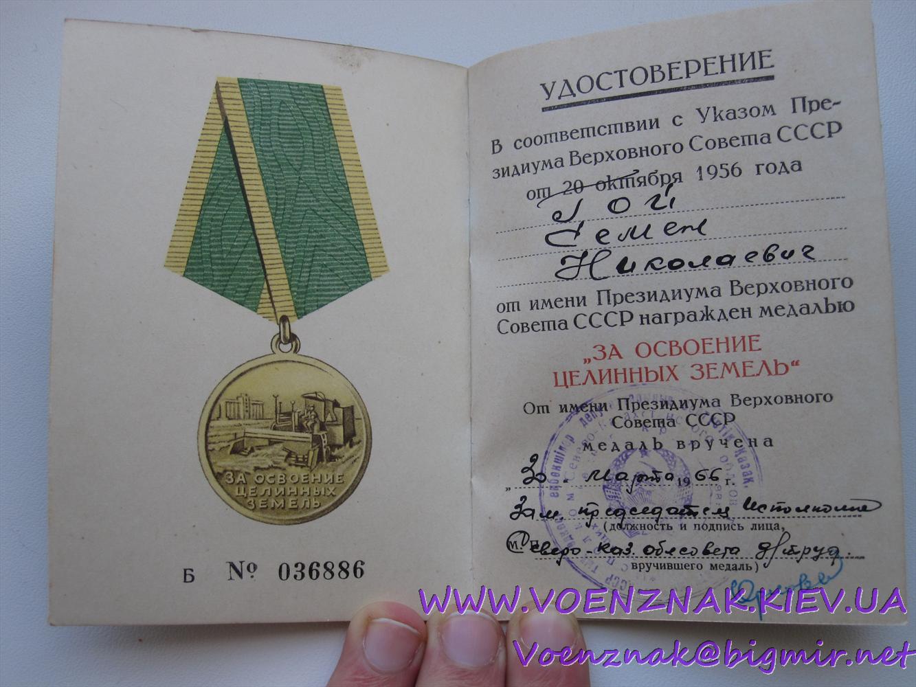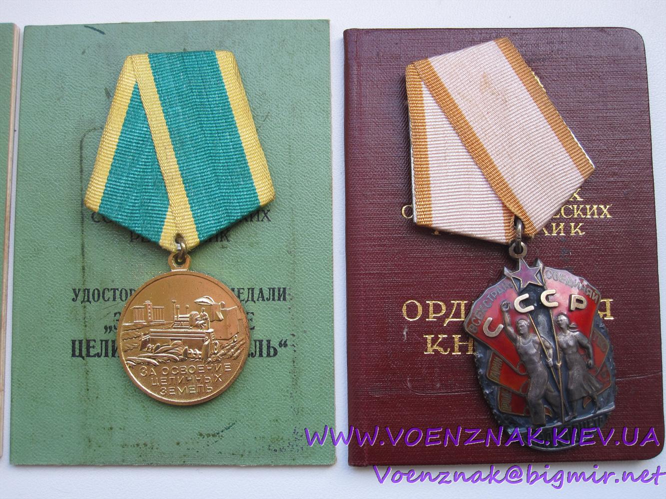 Комплект, Медали: две медали "За освоение целинных земель"; "100 лет со дня рождения Ленина"; орден "Знак Почета"+доки