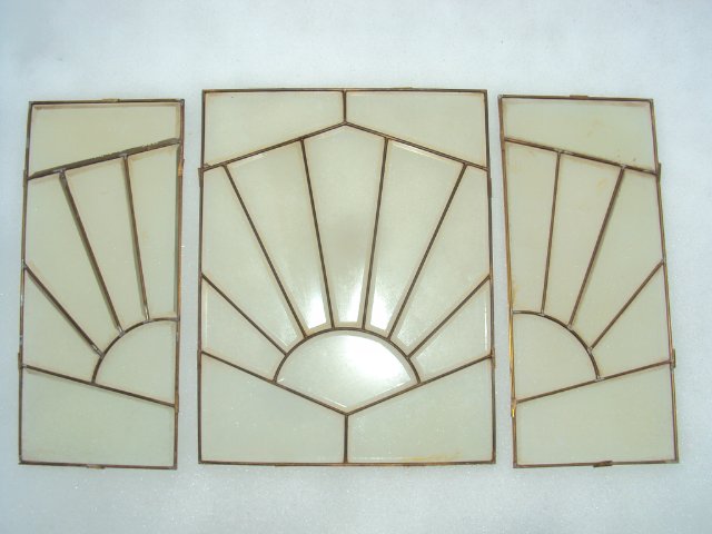 СТАРИННЫЕ ШЛИФОВАННЫЕ СТЕКЛА В ЛАТУННЫХ РАМКАХ. БЕЗ ПОВРЕЖДЕНИЙ. РАЗМЕР БОЛЬШОГО 46Х36 СМ. МАЛЫЕ 46Х21 СМ