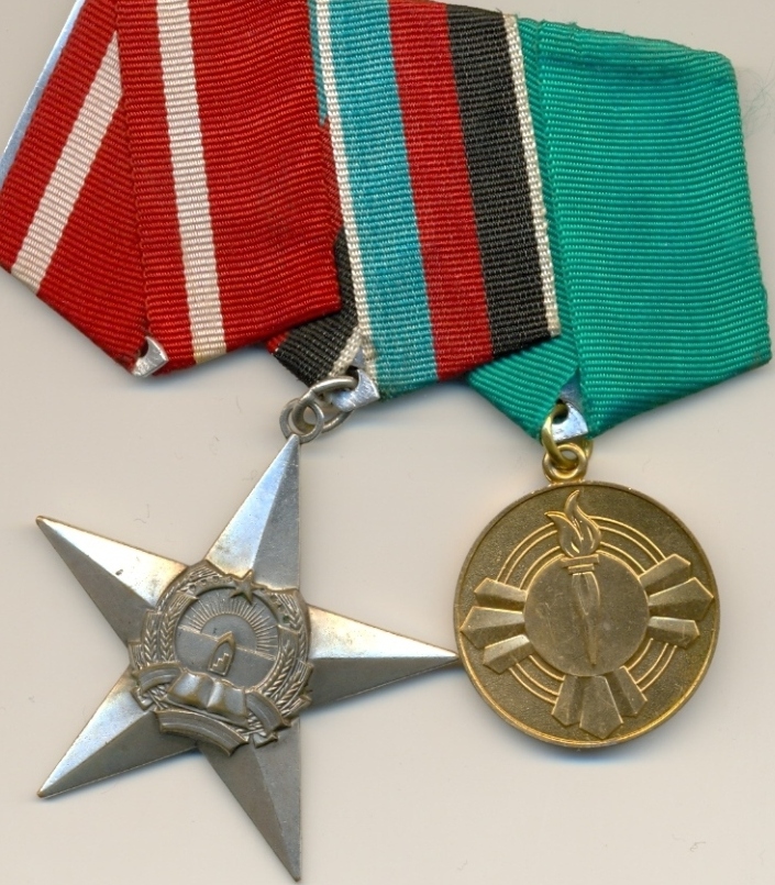 Колодка на три награды Афганистана. Орден боевого красного знамени утерен. В продаже два предмета: орден Звезды 3-й ст. и медаль 10 лет Саурской революции