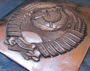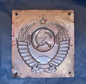 Образца 1946г. Тяжелый металл, никелирование. Явно снят со столба. Размеры 20х22см.