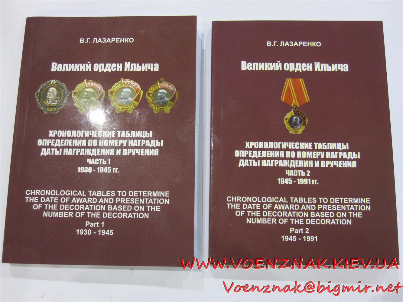 Два каталога "Великий орден Ильича", Хронологичиские таблицы опредиления по номеру награды даты награждения и вручения. 2 тома