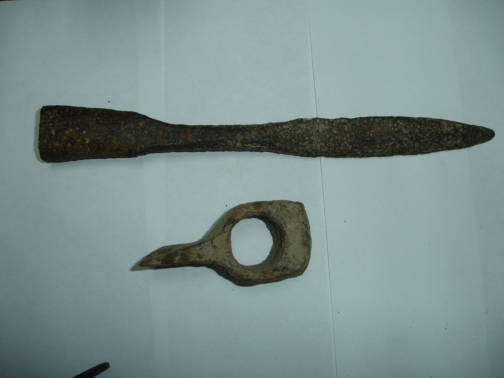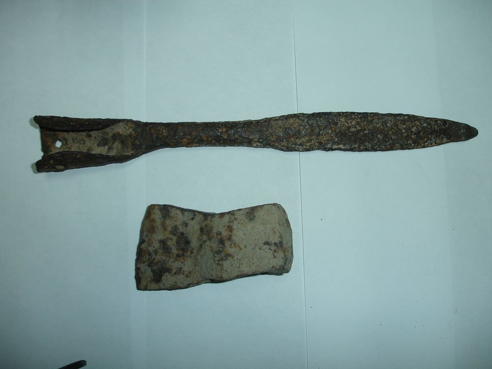 длина копья - 29 см., топор - 9,5 см