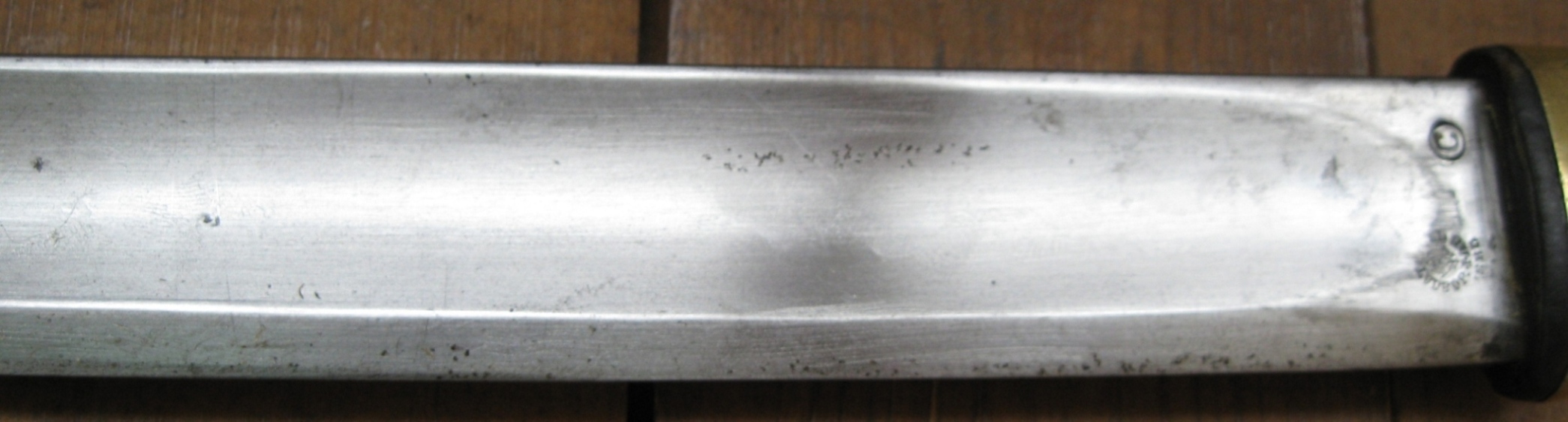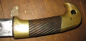 Шашка казачья обр.1881 года. Родная шашка- год выпуска - 1885, интересное клеймо ЗОФ. На пяте клинка хорошо видны все приемочные клейма. На нижней детали рукояти стоят полковые клейма ЛГКЕВП - Лейб Гвардии Казачий Его Величества полк. Ножны в комплекте, старая кожа- все детали старые, но на приборах ножен стоят "А", ножны более поздние.( Субъективное ощущение по отпечатку на хлясте в комплекте с данной шашкой давно). Фото пока такие, завтра сделаю дополнительные. Родной сбор, никто в шашку не залезал. Предложите