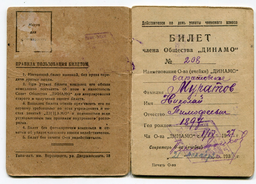 Вот Муратов был майором НКВД, спрашивается, зачем ему было записываться в "Динамо"?