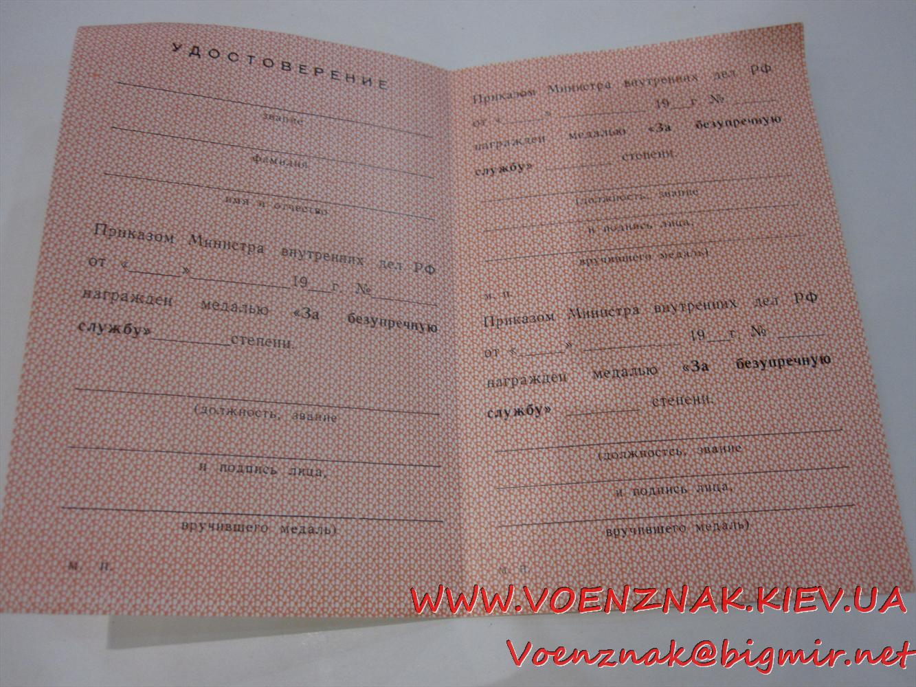Удост. к медали За безупречную Службу МВД РФ, пустое, незап. Герой Украины - 09 июн 2012 20:32.05 × Мини профиль пользователя Герой Украины Сообщения: 19290 Зарегистрирован: 20 апр 2010 14:22.48 Откуда: Украина Статус: Не в сети - 09 июн 2012 20:32.05 #3726630 Фото +380931624321 Viber, WhatsApp, TelegramSkype: ALEXANDR.GEROY E-Mail: Voenznak@bigmir.net