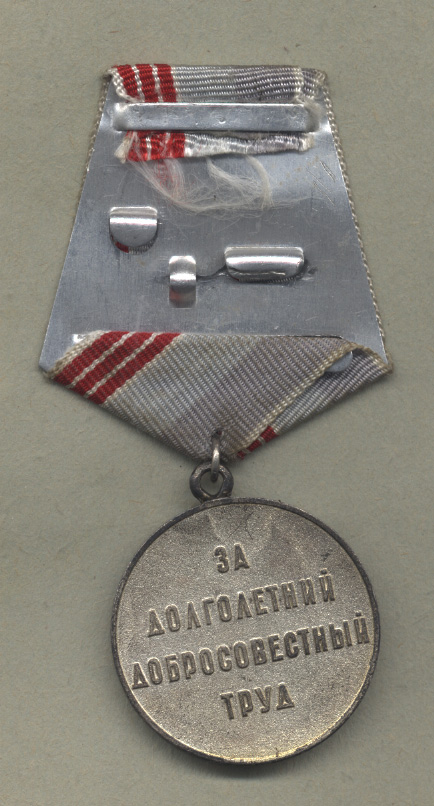 Полная оксидировка лицевой стороны , включая надпись “СССР”, рельефное изображение лавровой ветви, серпа и молота и букв надписи “ВЕТЕРАН ТРУДА". Реверс традиционный, с серебрением. Ухо - петля, без ЛМД. Вручение конца 1986 г.