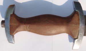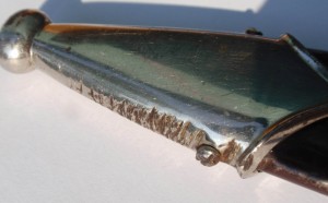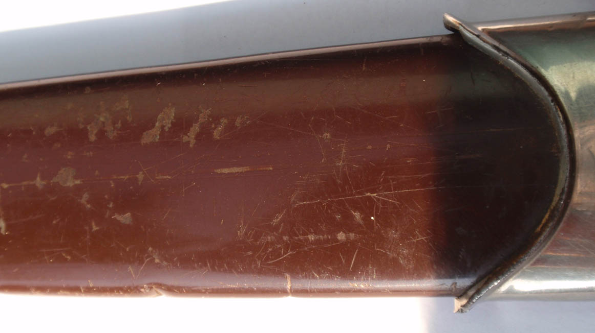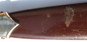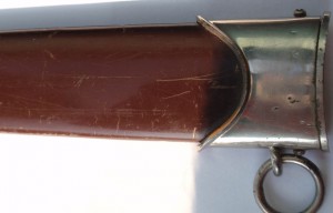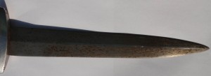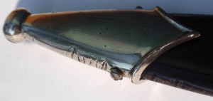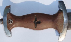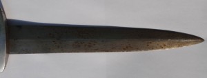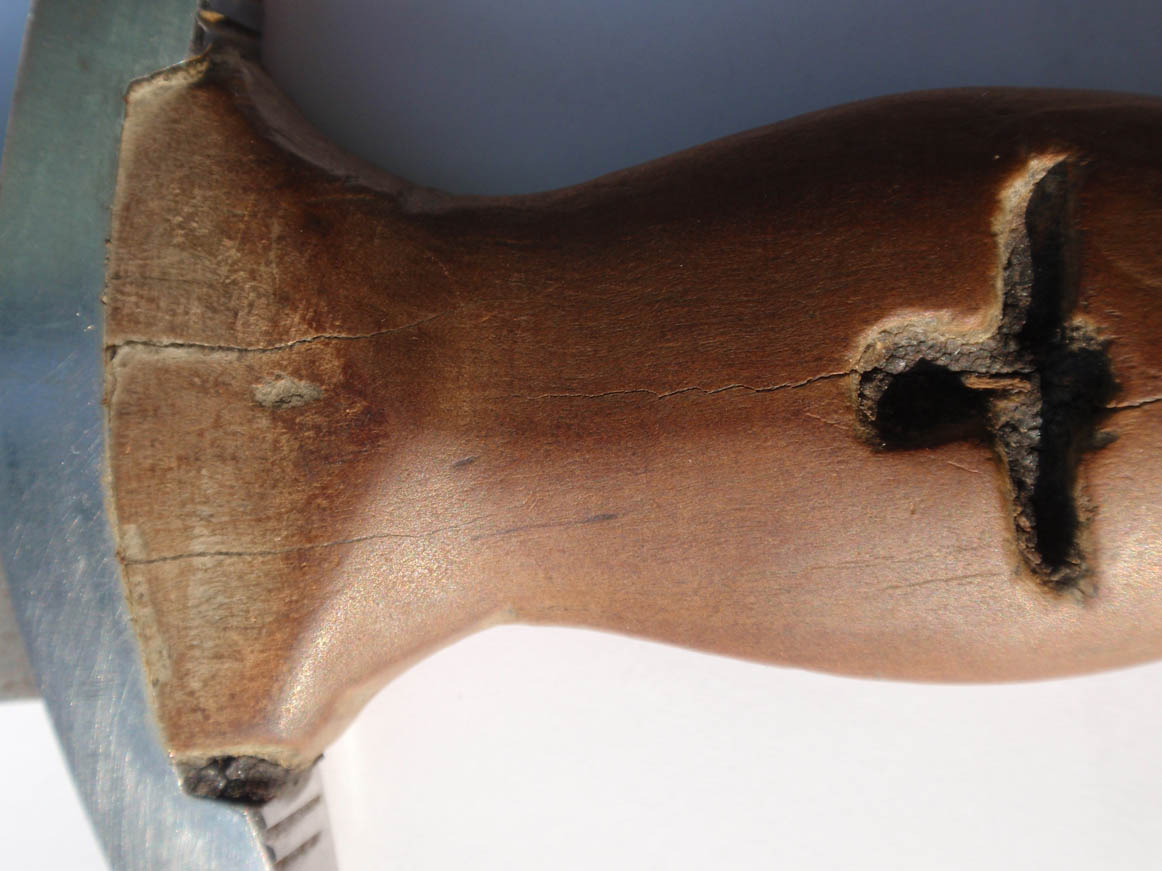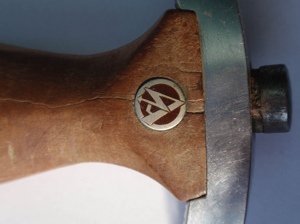 Трофейный , по-этому- курицы нету , девиз и клеймо производителя зашлифованы . Рукоять имеет трещинки , в остальном нормально .