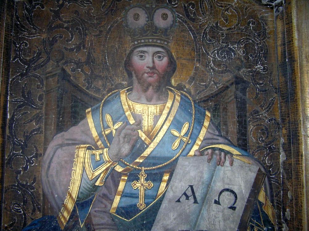 Икона Спас на престоле. Дерево. Размер 170 х 95см.