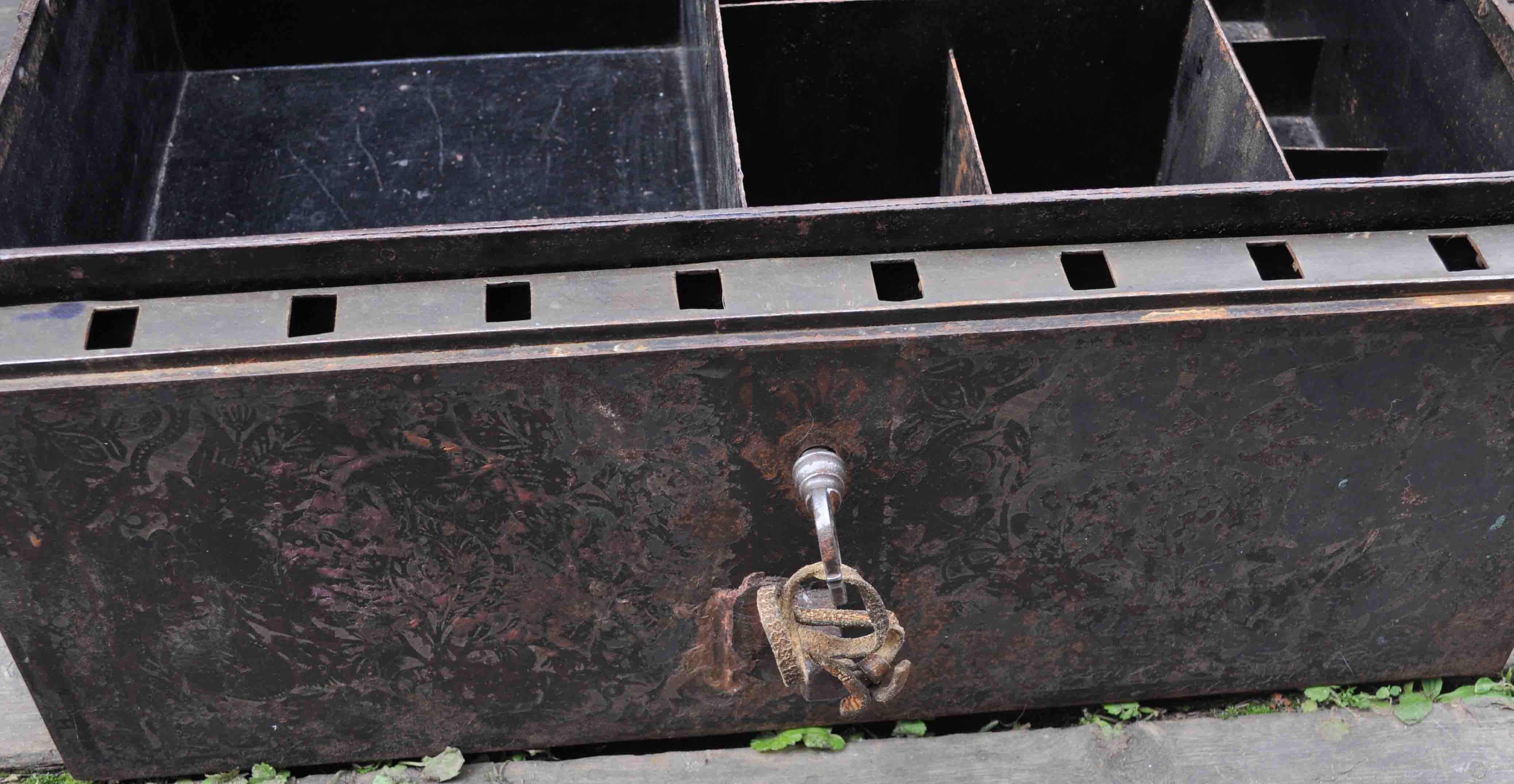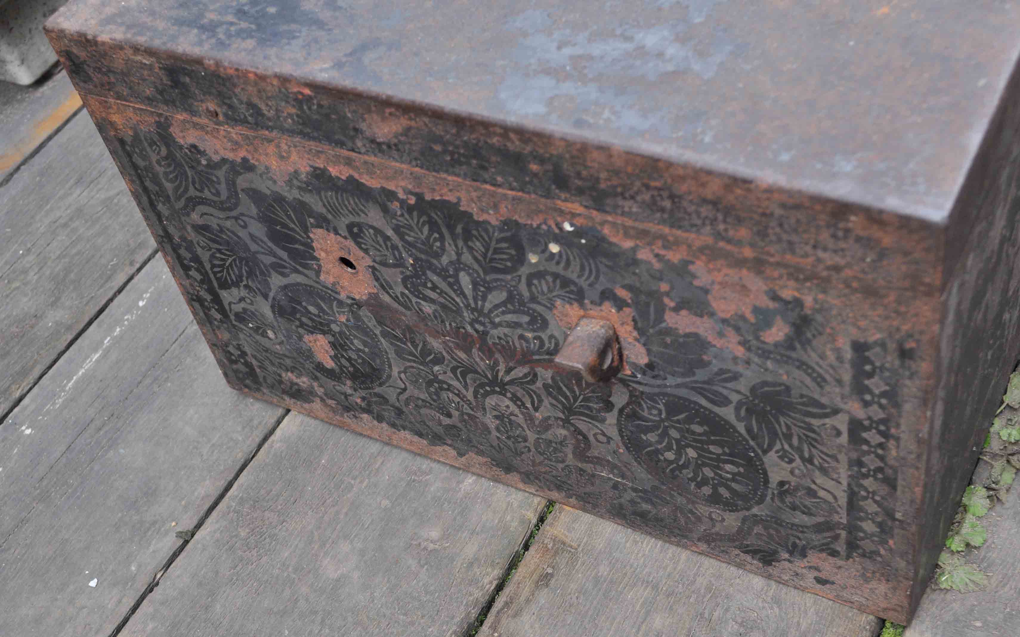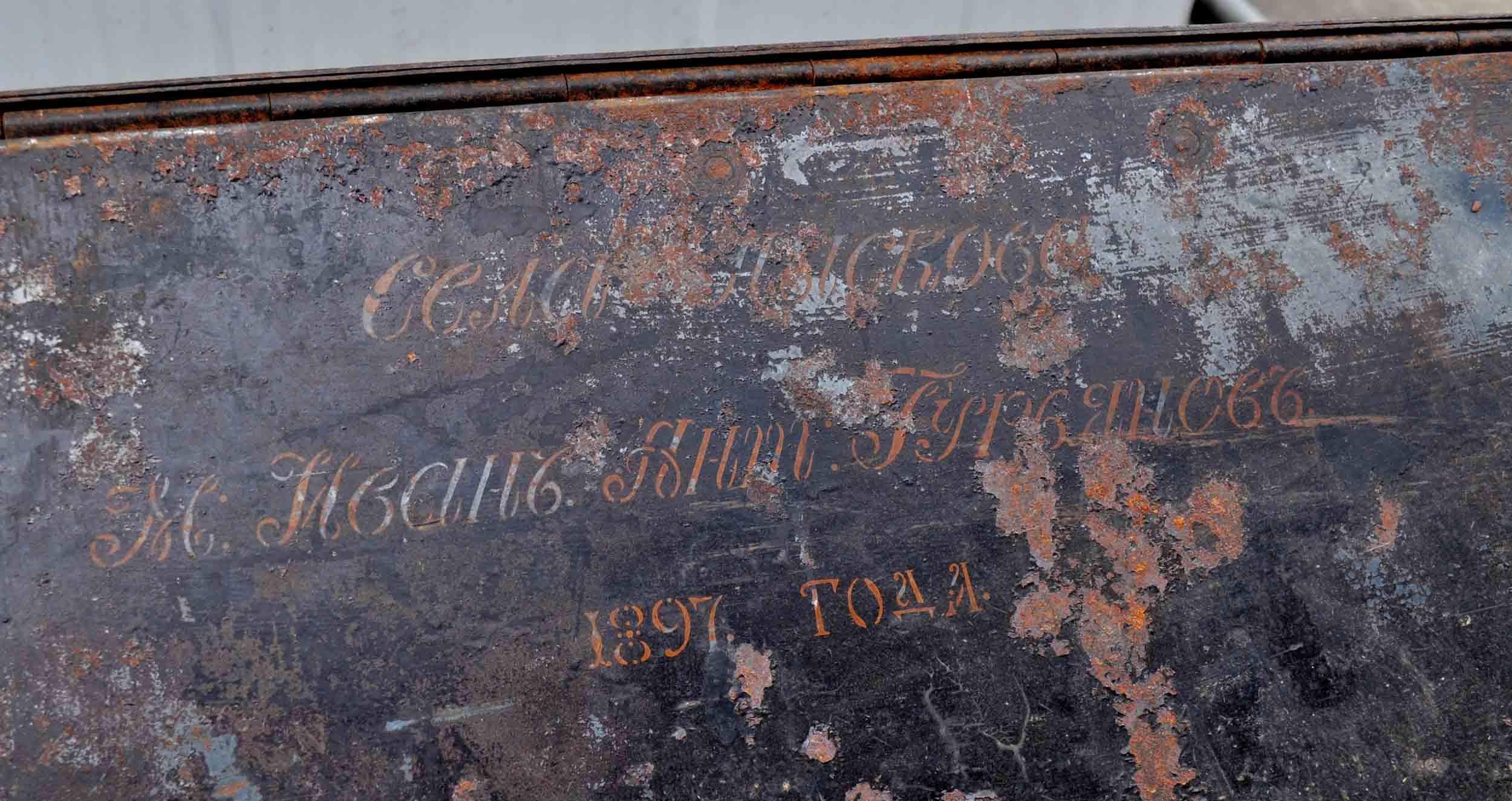 На металле сейфа сохранилась большая часть гравировки. Есть надпись " сель ...... скова