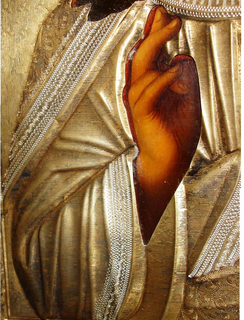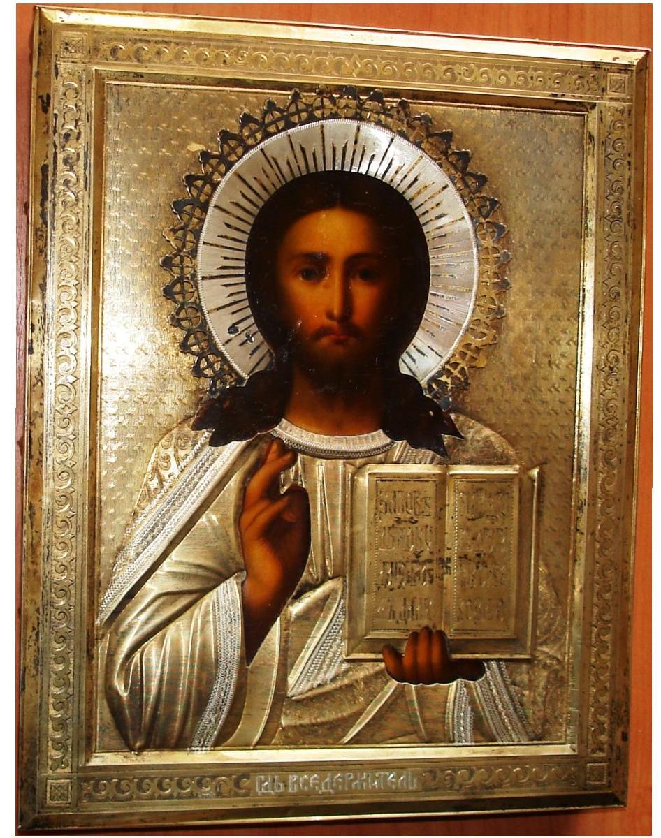 Красивая икона в очень хорошем состоянии. Позолота вся целая. Отмывается очень легко.