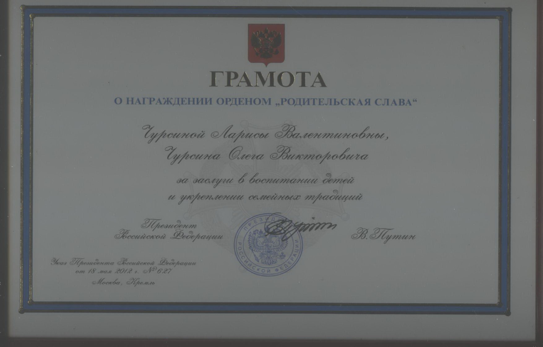 Что то не заценили родители Чурсины,награды папы Вовы....