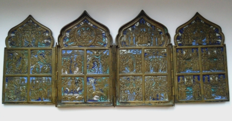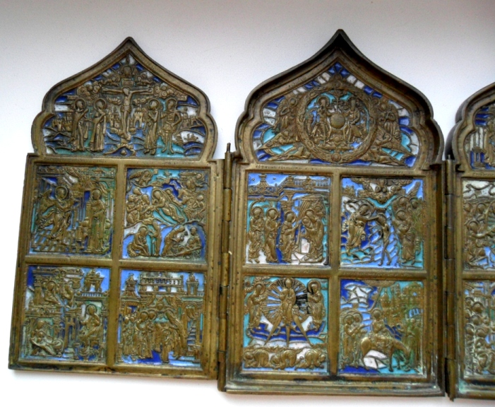 Продам икону в серебряном окладе 84 пр. с эмалью вес оклада 4 кг.
