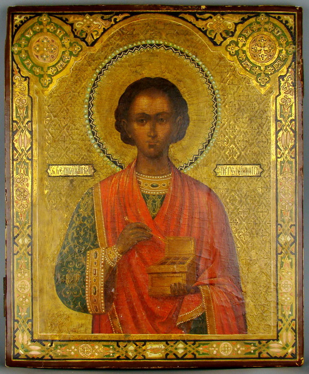Икона Св.Пантелеимон. Размеры 45х38х3 см.