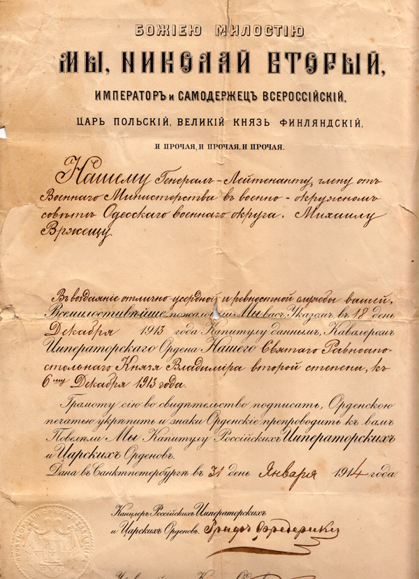 автограф Графа Фредерикса - Канцлера Российских Орденов - http://ru.wikipedia.org/wiki/%D4%F0%E5% ... E%E2%E8%F7