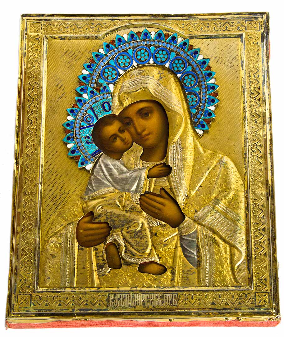 Москва 1899-1908е года, мастер Волков Павел Михайлович, клейма на венке и на окладе совпадают, родная позолота, эмали целые, без реставрации.