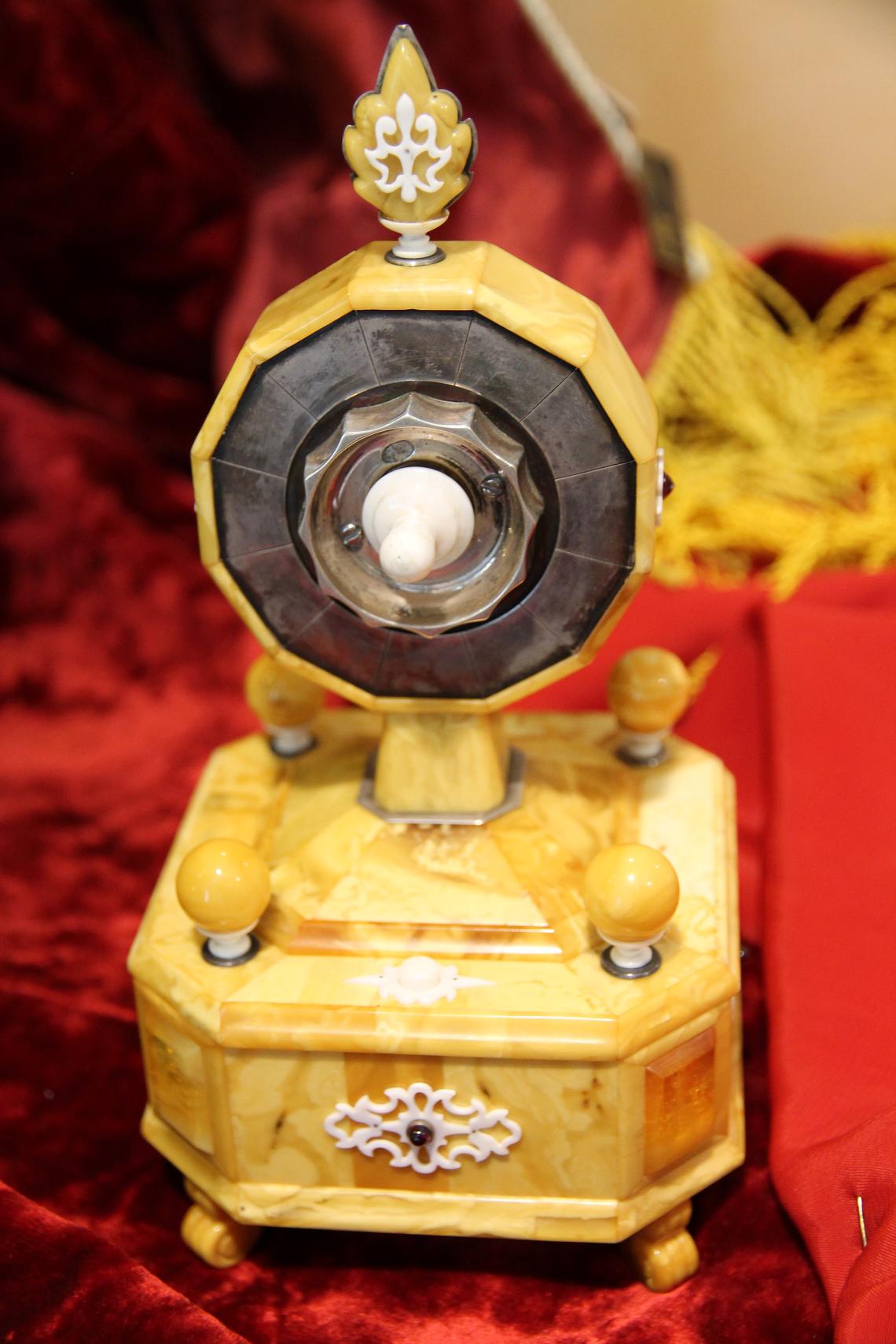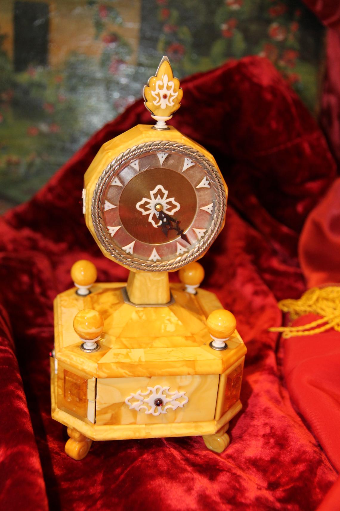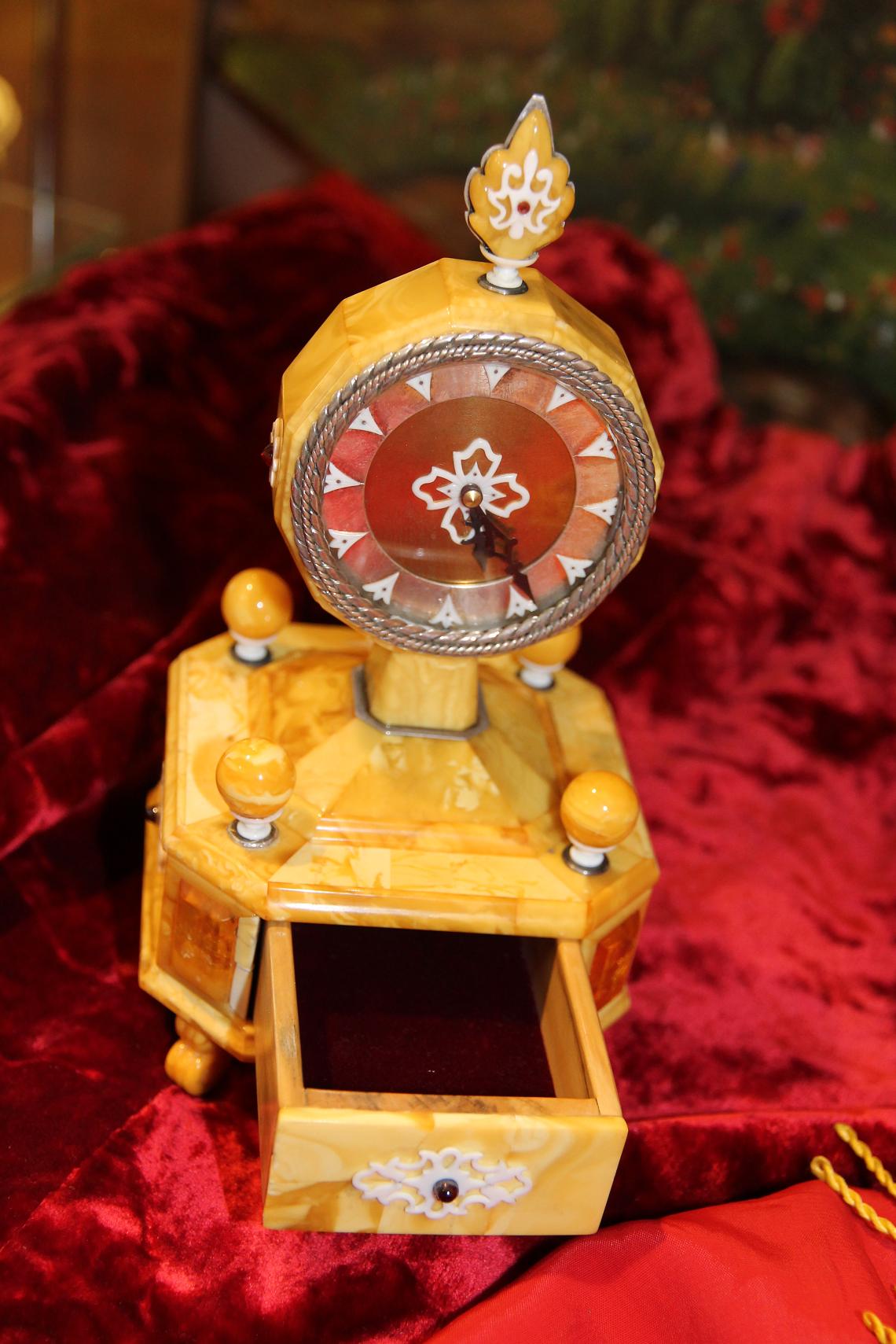 На всех 4 углах - накладки из прозрачного янтаря - под которыми находятся изображения маяка, парусника, моря и т.д. Изображения выполнены гравировкой по янтарю