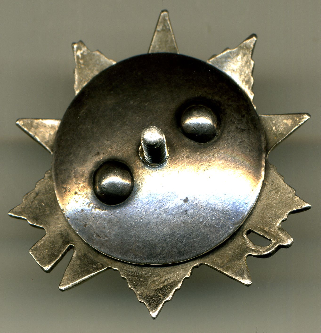 Приличное состояние, эмаль без чешуй и сколов, имеются следы ношения, но похоже слегка полирнули лучи, гайка серебро, крутится свободно, остальное на сканах.
