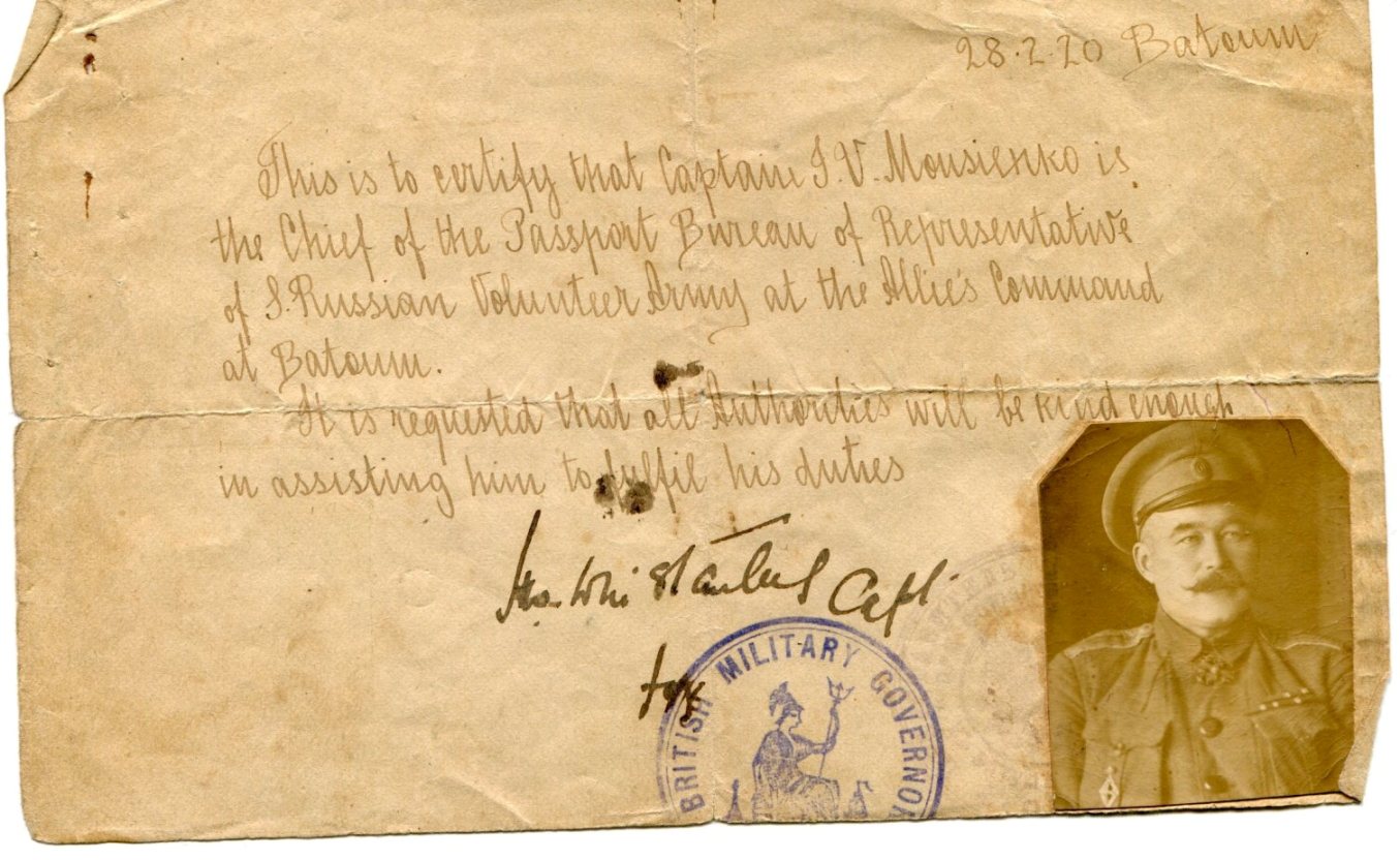 Удостоверение личности. Батум 1920.