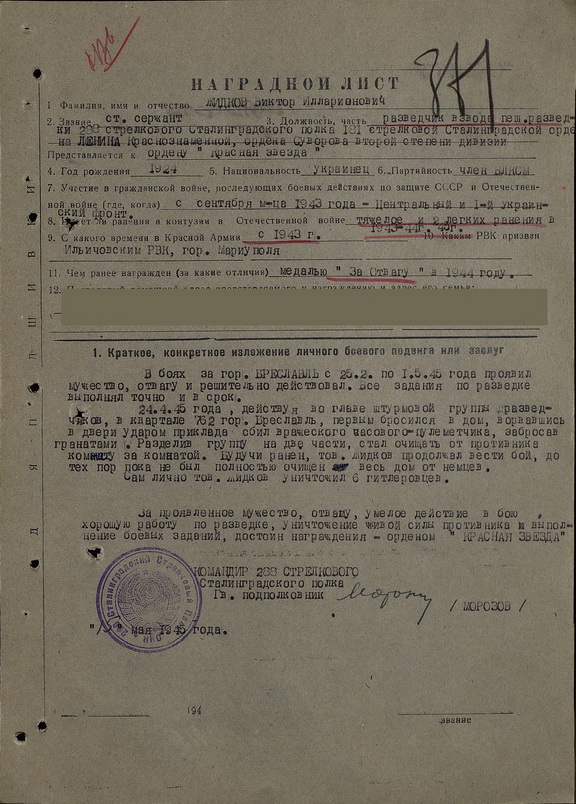 Наградной на первую КЗ взят на Подвиге народа. По отваге информации нет.