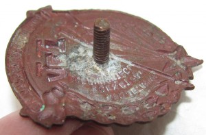 Размеры знака -4,0х3,2 см. Знак копаный, медный, сохранился очень хорошо.