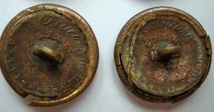 Такие пуговицы имели с 1855 по 1860 2-й учебный стрелковый полк (с февраля 1858 - 2-ой учебный стрелковый батальон) и с 1856 по 1862 2-ой гренадерский стрелковый батальон. В неплохом сохране для копанных предметов.