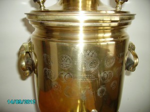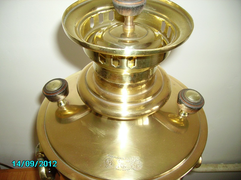 Самовар в отличном рабочем состоянии.Без ремонта,ничего не распаивалось,все свое.Без вмятин и трещин.Клейма на всю грудь в прекрасном состоянии.Обьем 5-6 литров.Лужение в отличном сохране.Клейма на подставке ,тулове и крышке.