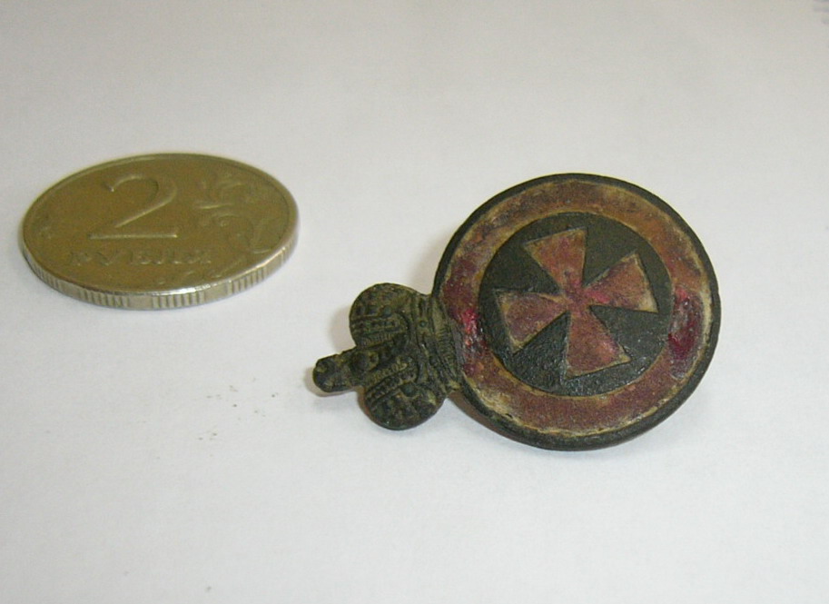 Клюква большая , 21мм на 30мм , на шашку , на большую закрутку ( фабр. Слава Москва например) или при награждении георгиевским оружием на щиток . Возможно как фрачник носили при цивильной одежде (?). Вещь копаная ,очень бодрая. Не чистилась, только протерта , так как улучшить внешний вид чисткой можно, а вернутся к такому гораздо сложнее- кому что надо. Предложите денег . По РФ.
