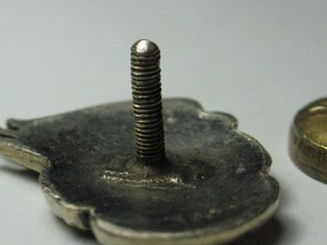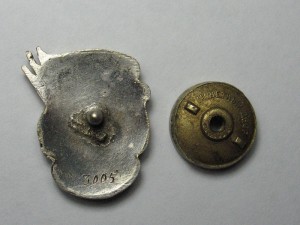 В левой части знамени и справа от СиМ -есть кружки под эмалью, скорее всего некачественно обработанная поверхность металла перед наложением эмали.