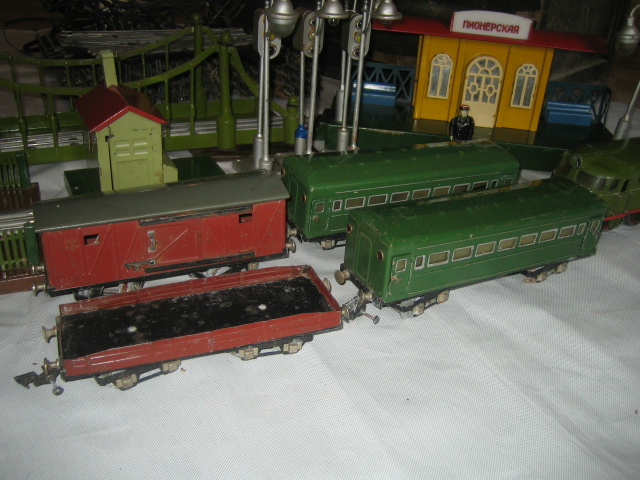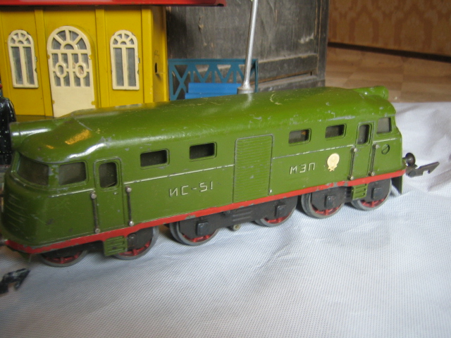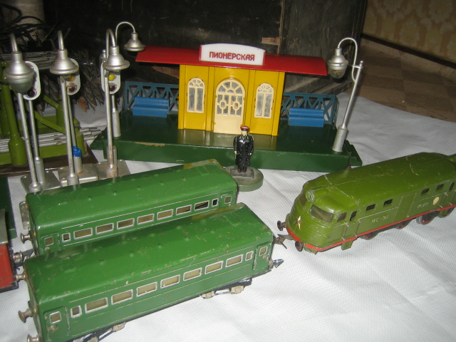 Хочу продать. Имеется полный комплект, в хорошем состоянии, в родной деревянной заводской коробке. Игрушечная железная дорога выпускалась московским заводом «Прожектор» на шоссе Энтузиастов и была одной из самых сложных и дорогих электромеханических игрушек конца 50-х годов. Игрушка стала поступать в продажу примерно с 1955 года и продержалась около 15 лет. До 1961 года она стоила 360 руб., после хрущевской денежной реформы – 36 руб., но и в том, и в другом случае вожделенная мечта многих городских мальчишек – а продавалась дорога только в крупнейших универмагах СССР, таких как «Детский мир» или «Дом игрушек», была недоступна. Чаще дорогу покупали бюджетные организации детского творчества – дома, клубы и кружки юных техников.