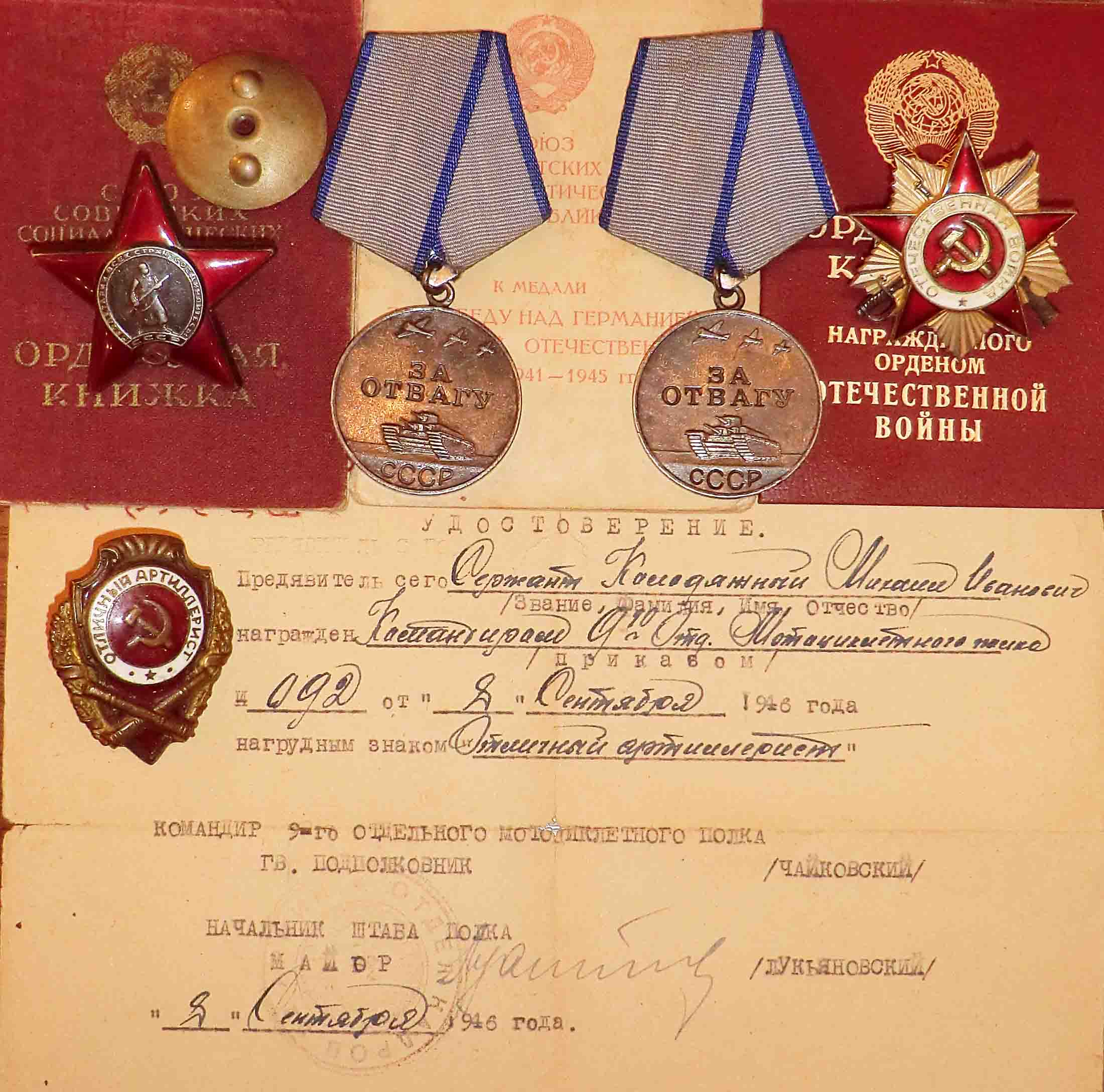 КЗ+Отвага+Отвага+ОВю+ЗПГ+Отл.Арт.-на Колодяжного ккв - 20 окт 2012 23:14.48 × Мини профиль пользователя ккв Сообщения: 15043 Зарегистрирован: 19 июл 2005 22:44.08 Откуда: RUS Статус: Не в сети - 20 окт 2012 23:14.48 #3920237 На КЗ эмаль без видимых изъяновНа Отличнике следы ношения, гайки нетСтарт 9 тр Фото