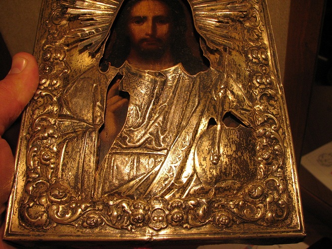 Позолота , на венце мастер Т.Б , на окладе Т.С.Б