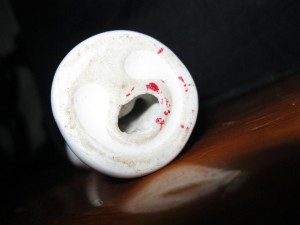 Чешуйка между рукояткой серпа и молотом.