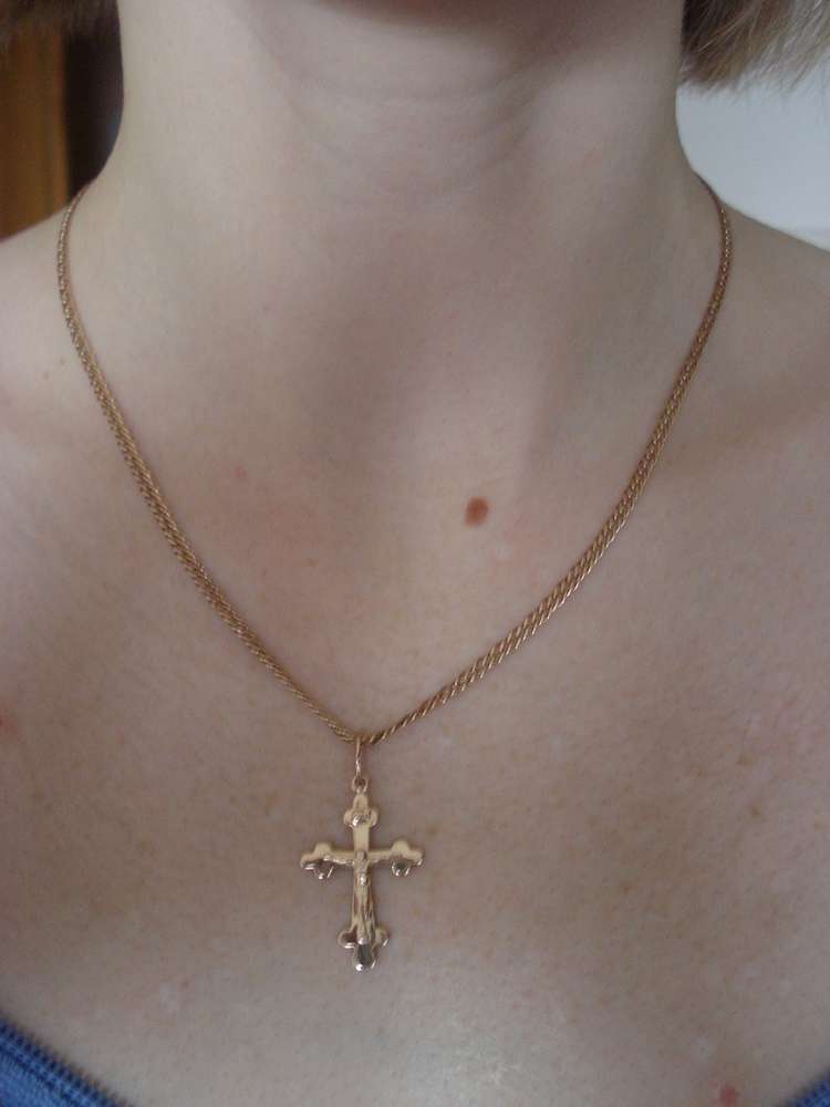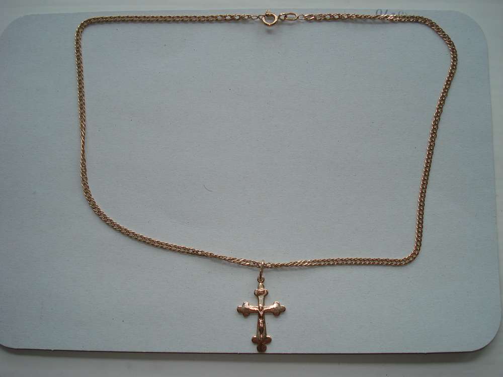 Комплект в хорошем сохране.проба 585.общий вес 8.31грамма.цепочка вес 6.12грамма.крестик 2.18грамма.Общая длина 520мм.Киевский зовод Каштан.