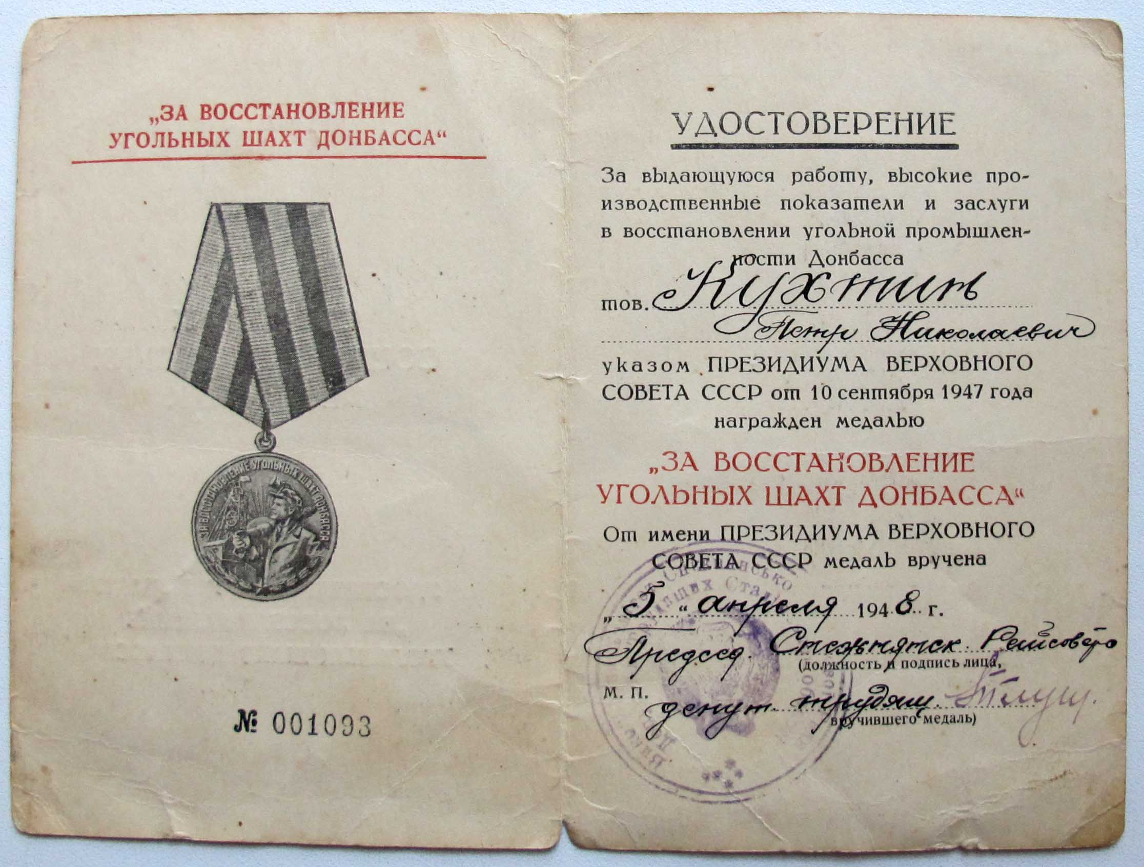 Медаль продана, док в продаже.