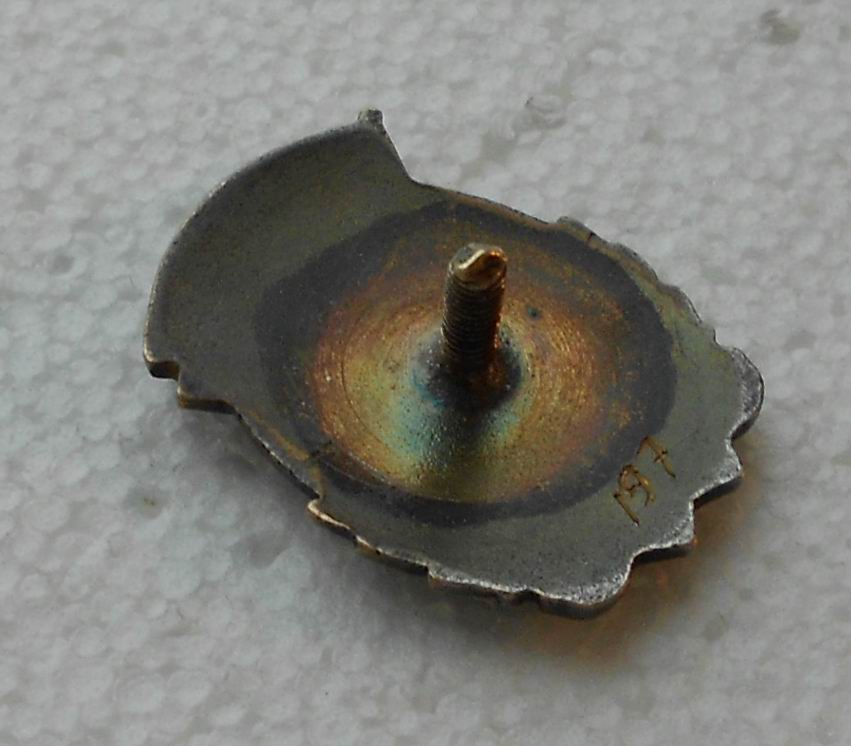 микроудар по гурту, как следствие чешуйка на красной эмали (буквы НИ)