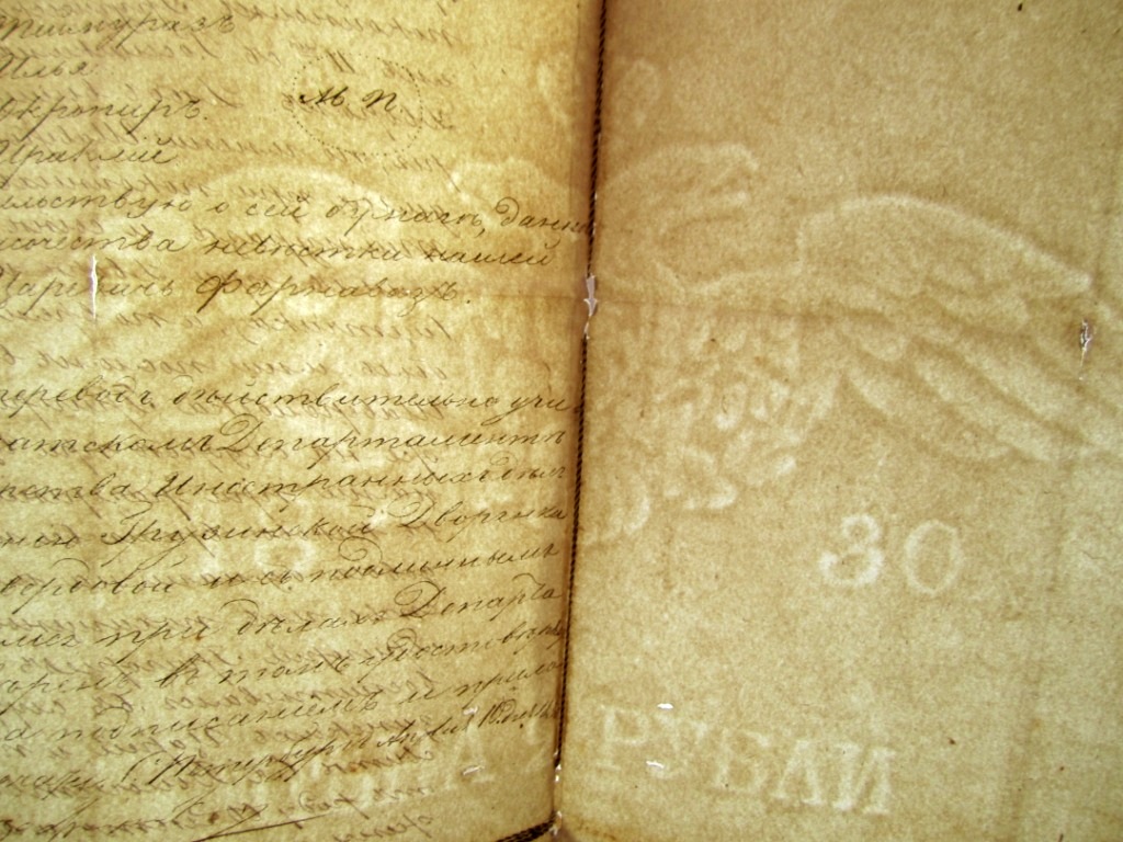 На гербовой бумаге верже. Оригинал + перевод,подшитые и закреплённые личной печатью гр.царицы!