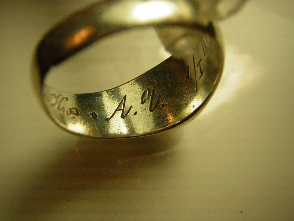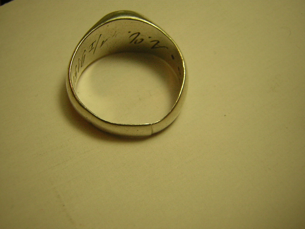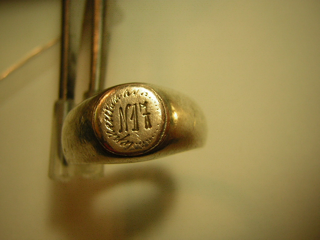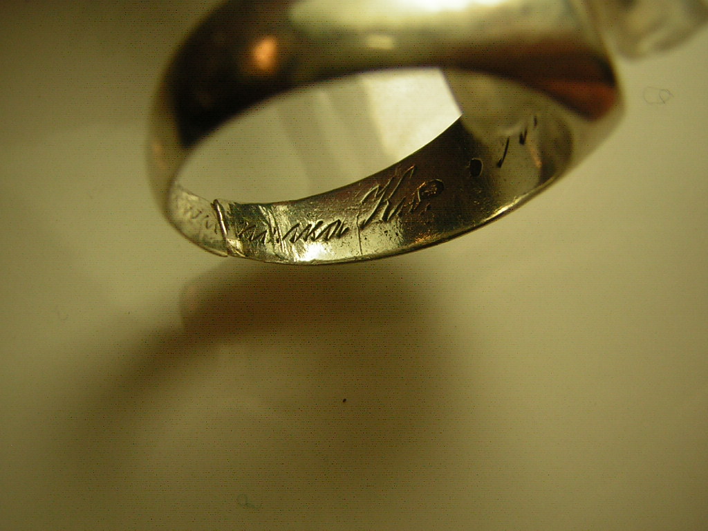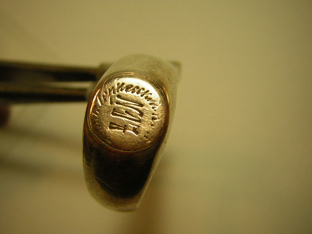 Надпись штихелем внутри перстака гласит: