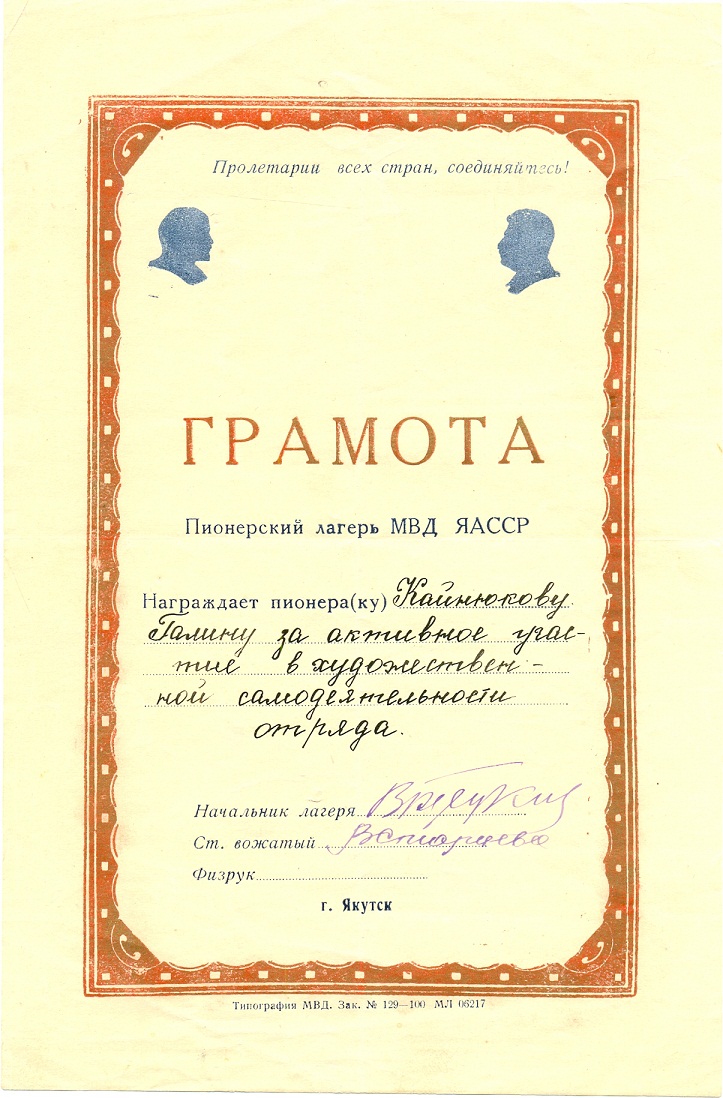 2. - Грамота ПИОНЕРСКОГО ЛАГЕРЯ МВД - 300 р.