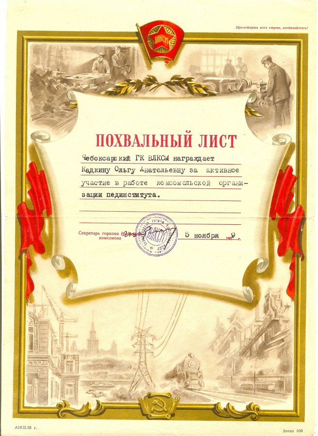 1. ПОХВАЛЬНЫЙ ЛИСТ 1959 года. Комсомольская организация! - 300р.