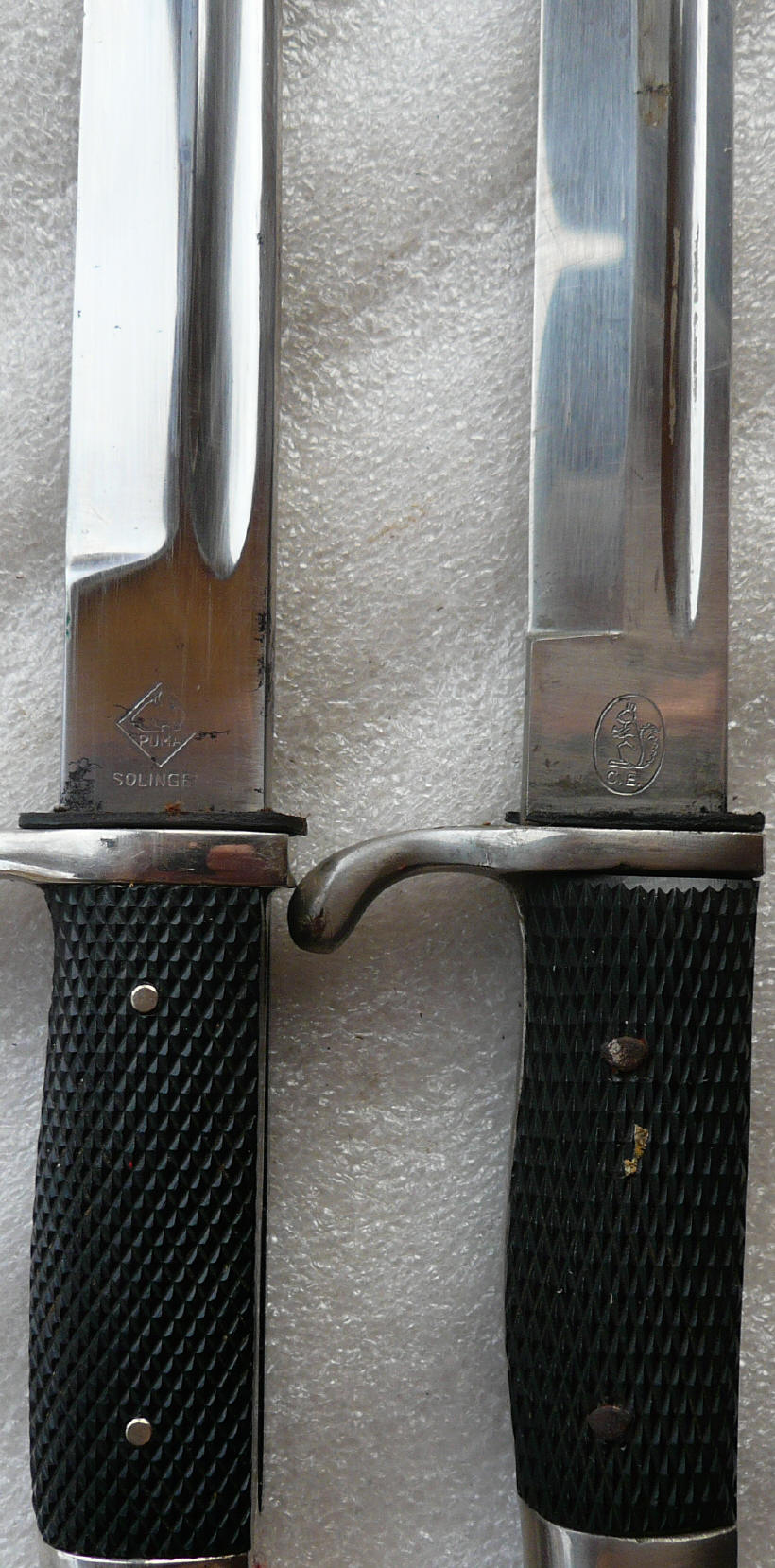 2. раннее клеймо "Eickhorn", ОЧЕНЬ редко встречаемое на парадниках. Кнопка заедает, погнут тыльник рукояти, - 6.800.
